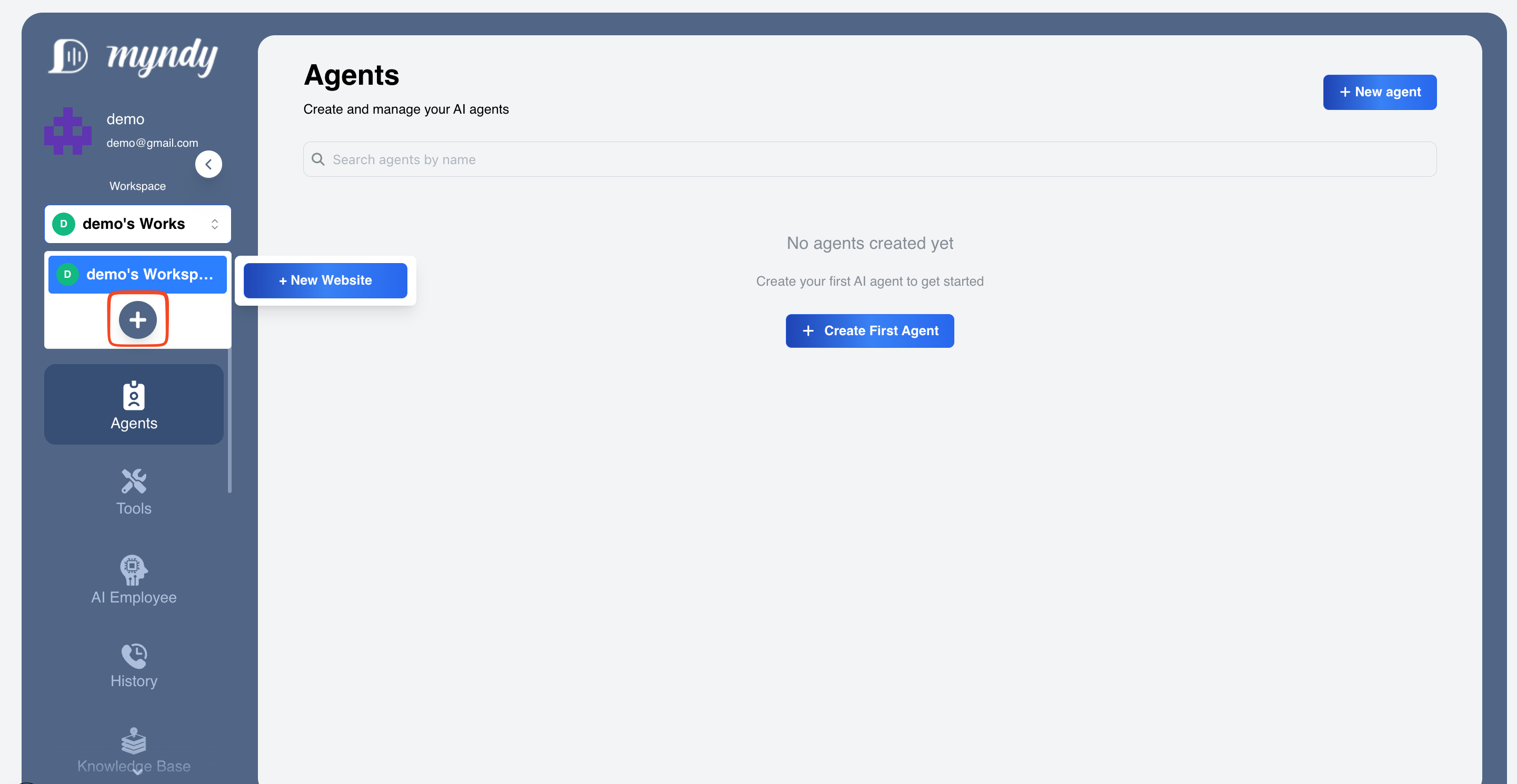 Creating an AI agent in Myndy is simple and straightforward. Follow these steps to get your agent up and running.