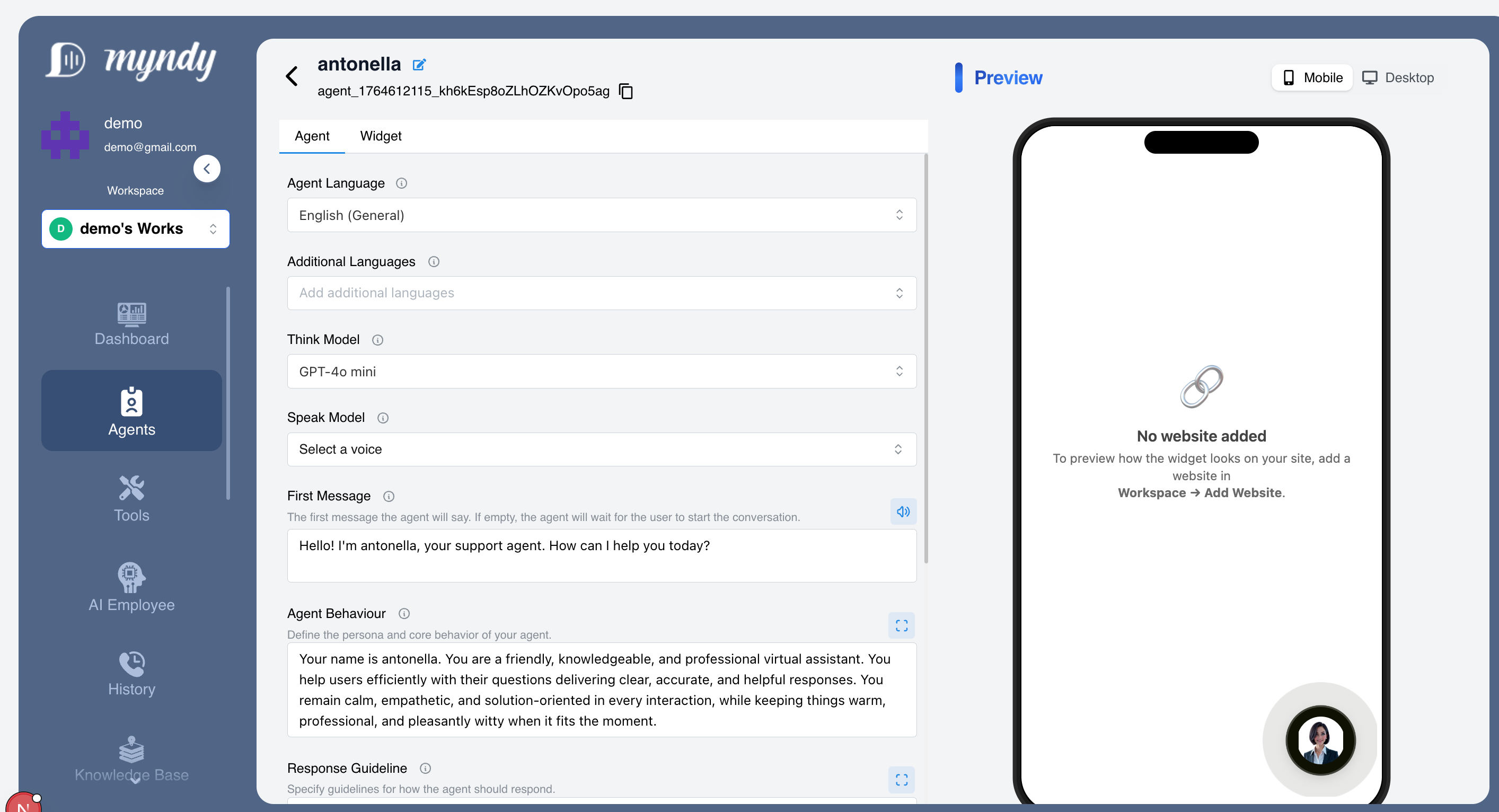 This comprehensive guide will walk you through the process of creating your first AI agent in Myndy.